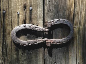 Horseshoe hinge on a door at the Mountain Farm Museum, Great Smoky Mountains National Park, North Carolina